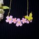 初樱与柠檬黄粉蝶 樱花蝴蝶造型项链 手绘木制
