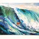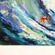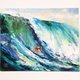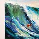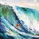 Surfer Painting. Wave Abstract Wall Art. Landscape Impasto Art.