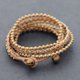 这是手工编织的手链,用黄褐色打蜡的绳子与黄铜珠一起编织。关闭使用黄铜钟(无声)