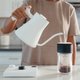 2. 手冲壶装水加热后,壶底出现白色斑点为正常现象, 若不希望产生沉淀物建议使用RO纯水, 可避免产生碳酸钙沉淀物, 如遇此情况亦可使用食用柠檬酸或小苏打粉泡水约1:10,浸泡清除使用,日后可重复一样方式定期清洁。