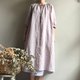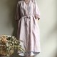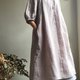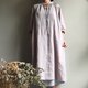 *庄园森林* 浅灰色 小立领。开襟绑带。空气感皱褶长版洋装。100%亚麻