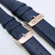 快拆皮革表带 ------------------------------------------------------- 颜色选择: 深蓝色 尺寸:20MM(有车缝边)/16MM(无车缝边) 扣头:玫瑰金/银色/黑色
