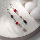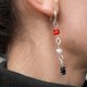 原矿月光石、黑碧玺与红珊瑚耳环,925 纯银,六角形连接件,对应海底轮与心轮,适合处女座生日石,九月诞生水晶,天蝎座的宝石饰品,摩羯座的珍贵水晶,双鱼座的礼物。结合半宝石的几何与不对称设计耳环。