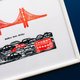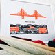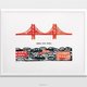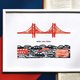 ★这座红色的桥梁、汽车和巴士是您墙壁装饰的绝佳补充!这幅旧金山着名金门大桥的油毡版画干净、生动、现代,非常适合您的家。