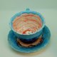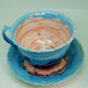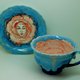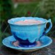 瓷茶(或咖啡)手工套装。 杯碟搭配美丽的蓝釉。 杯子里有一个惊喜——一朵美妙的花。 就像童话故事“爱丽丝梦游仙境”中的一样。 物品是功能性的,就像普通的菜肴一样。 对于任何饮料,请注意菜肴。 这对茶对任何场合都可以作为明亮、难忘的礼物。 单本。