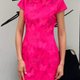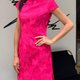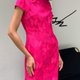 Yiming MIRANDA 桃红色蝴蝶印花长款旗袍
