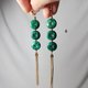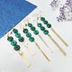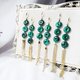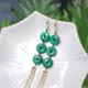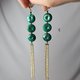 尺寸:孔雀石古钱直径约15mm,**A款(扁排流苏)**含耳鈎整体高约11.5cm,**B款(长细流苏)**含耳鈎整体高约13.6cm,**C款(长钻流苏)**含耳鈎整体高约14.8cm。