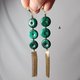 本件严选**顶级孔雀石**设计,宝石色正绿、艳丽、纹理独具,品相极美,磨制古钱(平安扣),3枚古钱象征**三元及第**,佐3款风格各异之金流苏,型制古典,大器华美,演绎强大成功、富贵、睿智之气息。
