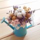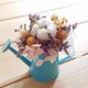 - 由永生花绣球.棉花.圆仔花.卡氏比亚制作而成的造型盆花 盆花尺寸高约13cm(含花) 花器宽约15cm 花材约10cm 水壶颜色随机出货