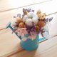 由永生花绣球.棉花.圆仔花.卡氏比亚制作而成的造型盆花