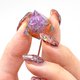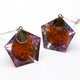 - Pentagon type dangle earrings made by hollowing out the Pentagon type into a dome shape and enclosing original parts using purple and orange colors, polarized powder, brion, artificial crush opal, etc. with crystal resin.