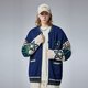 版型:宽松型。 款式细节:提花。 材质成分:腈纶55%,棉45%。 适用季节:冬季。 款式:开衫。 袖长:长袖。 领型:棒球领。 图案:爱心,星星。 尺码:S,M,L,XL,2XL. 颜色:宝蓝色。