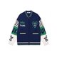男士宝蓝拼色开衫针织衫 冬季提花毛衣外套