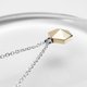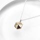 坠子主体为立体正六角/边金字塔造形的无电镀黄铜材质,背面焊接925纯银材质底片并打上品牌logo,金属表面以手工抛光亮面处理,坠子穿链处与项链皆为925纯银。