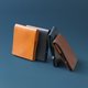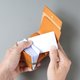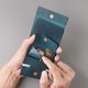 将卡片夹在弹性带上,独特的结构让皮夹能大幅展开,清晰易见且方便取用。