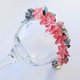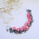Floral bracelet is complemented with pink and smoky cat's eye beads.