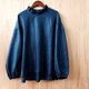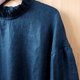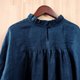 **【 细褶领落肩长袖罩衫/ 蓝绿棉麻 】**