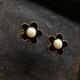 coco黑色小花针式耳环 / 尺寸 / 宽约1.4cm / 材质 / 塑胶电镀、不锈钢耳针 / 手作 / 台湾手作、手作品都会有手工感。 / 使用及保养方式 / 附饰品密封袋,没有配戴时可放入袋内,减缓氧化,延长其寿命。