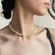 花式编织的珍珠短项链,外形就像满天星一样,一颗颗白色小馒头珍珠和小金珠看似随意地分布,星星点点缠于腕间,是设计感较强的一款短项链。