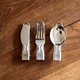 2・此款折叠餐具把手附有固定挡片设计,只要将挡片推到弯折处最底即可卡住餐具,不会在使用时折起。