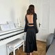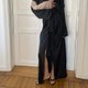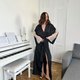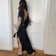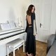 这款丝滑露背长袍采用顺滑闪光面料,展现轻奢质感。网纱拼接的宽袖设计带来现代柔美氛围,随动作优雅飘逸。