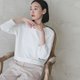 ▪ V字领口设计,露出锁骨,修饰颈部线条。