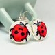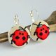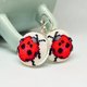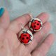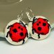 绣有瓢虫的手工耳环。 图案是我设计的,也是我绣的。