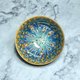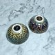 此作品是透过四到五层不同的釉药层层堆叠,借由每层施釉厚薄拿捏,并窑烧至1260度,历经20小时的烈火淬炼,让它在窑里收缩流动,产生出孔雀羽毛的斑纹与流动感。