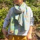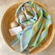 以带有异国情调的香料图案,为造型注入一抹清新的蓝绿色调。这款围巾不仅适合微凉的天气,也能应对气温的骤变,或是为夏日艳阳提供温柔的屏蔽。别致的蓝绿色调,散发着迷人的光泽。作为造型的亮点,也十分引人注目。
