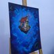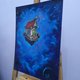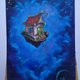 原创油画。太空中的房子。该画是用油彩在纸板上绘制的,尺寸为40x30厘米。