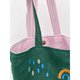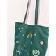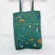斜背包,深绿色亚麻材质 正面与背面皆有手工刺绣 背带长度 24 英寸 尺寸 12*16 英寸 *内部为粉色条纹棉布 *内有小口袋 *附有钮扣开合 Material : Linen Handmade Embroidery