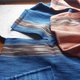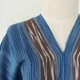 透过靛蓝与水蓝(淡靛蓝)的段染纱线编织布料,织就出富有表情的图纹。