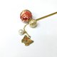 材质:镀金铜质发簪、日本进口豆织布料/缩缅布料、进口空气珍珠、金箔、玻璃罩。