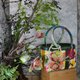 *这是一款一闲张工艺的小巧篮子包。以色彩缤纷的板缔め染和纸为基底,搭配拼贴的彩色和纸与花朵装饰。内侧与底部则选用绿色系的纸张,整体呈现花园的意象。免费赠送两种内衬束口袋(绿色系图案,束口处使用松紧带,无需绑绳开合),以及一个绘有水彩风格树木与绳索的磁吸式吊饰。您可以将其作为屏蔽,或根据您的穿搭风格自由搭配使用。