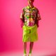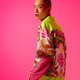 浩游天仙此次系打印花为主要的设计主轴,取材自台湾民俗野台布景,台上的背景广泛运用山水云雾或是中式宫廷殿宇等元素,其中一版印花转化这些元素并添加也具民俗感的仙女和莲花,揉合彩霞般的色调,在民俗的底蕴中以更现代的手法重新诠释布景的风格。