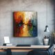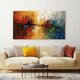 - 大胆的色彩与立体质感完美融合,金黄与橙红的暖色调在蓝绿冷色的映衬下,展现出独特的视觉张力。厚重的刮刀肌理呈现出丰富的层次感,光影交错间流露出城市光影的魅力。专业微喷完整还原油画质地,为现代简约风格居家空间增添一抹奢华艺术感。
