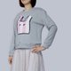 - 柔软蓬松的细棉针织毛圈, 简单又好搭配的灰色, 简单宽版的落肩款T-Shirt, 前面缝上毛线针织图腾, 带着笑脸的怀念的红白塑胶袋, 穿起来柔软舒适, 看起来可爱有活力。