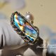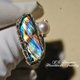 变彩拉长石是拉长石中最常见的宝石,其最大的特征是在拉长石集合体中大面积明亮的变彩。其中最漂亮的颜色是蓝色和绿色,几乎可以和蝴蝶的晕彩比美,除此之外还可见到黄色、金黄色、红色和紫色,从不同方向看可以出现不同的颜色或颜色消失,在转动过程中同一部位的颜色和光彩都发生变化,真正是青绿而玄,光彩照人。产生这种光学效应的原因主要是内部近平行板状的细页片状双晶与出熔结构面对入射光产生干涉而成,板面厚度与变彩色调的波长呈正消长关系。要产生同一色调的变彩,板面厚度可以不同,但在一定光源的条件下板面厚度必须是某一常数的整数倍。除此之外,拉长石中存在大量的包体,它们对光线的干涉和衍射也是呈现变彩的原因之一,包体密度影响光的衍射,包体大小影响衍射光的干涉,两者均与变彩色调的波长呈正相关。搞地质的人都知道,拉长石本身是白色的,只是由于其中常含有针状和板状钛铁矿包体,致使含包体多的部位颜色发灰。