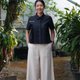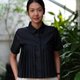 Cotton shirt with pleated at front .Fabric quite smooth and light make you feel comfrotable wearing.