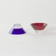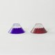 在琉璃色和红色的玻璃上刻出富士山山头的白雪,呈现出富士山和赤富士的样貌。