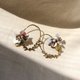- 看似和谐的藤蔓叶片与优雅的花之中 隐藏了不规则的圆弧线做为基底 是一种叛逆与倔强吧! 材质:玻璃珠 /珐琅 耳针:银针 尺寸:4x5
