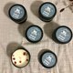 外盒容器为雾黑马口铁盒,尺寸约直径6.5cmX高4cm