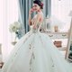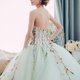 立体藤蔓雕花,马甲雕塑,华丽梦幻婚纱-苹果绿 12根鱼骨穿上秒瘦三寸的马甲设计,搭配舞台效果绝佳的浮夸10层澎裙,如仙境走出来的女神