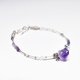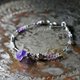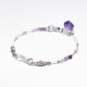 这是一款由粗岩紫水晶、莲花银、印度银小花、萤石、赫基默钻石、细致管状银珠等串连而成的纤细手链。