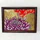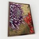 作品以华丽的**乱菊(Ran-giku,大菊花)**图案为主体,浓郁的紫色花瓣铺陈在金色底纹之上,并点缀深红色细节,展现出生命力、优雅与内敛的力量。在日本文化中,菊花象征着长寿、高洁与新生,使整件作品呈现出恒久且吉祥的气韵。