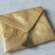- 一款简单的信封形迷你小袋,由金线带制成。 该商品光泽柔和且优雅,是完美的礼物。