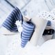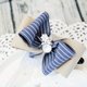 丹宁蓝配上卡其素面布料,经过层层的布料处理和缝制,硬挺有型的蝴蝶结就这样美美现身了