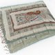 ▲喀什米尔靠近喜马拉雅山,为了对抗特殊的酷寒气候,水煮羊毛是喀什米尔利用当地自然环境发展出来的一种细致的工艺, 当地海拔高,水的沸点低,早晨在太阳上升时,将羊毛制品,放入融化的高原雪水中浸泡,之后加热沸煮。到了傍晚太阳下山时,再把羊毛制品在月光下晒,经由繁复工续后的产品, 不但可以清除掉一些杂质,羊毛产生收缩,纤维之间更加地紧密,最后经由妇女手工编织及刺绣,呈现一件件颜色及绣法独特的织品