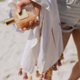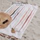长方形沙滩巾上排列着条文宛若与绵延海浪相映成趣般,充斥着变化与跳跃的灵动,斑斓色彩无疑赋予了椰林棕树的夏日海边更多热情。活泼的橙色点亮柔软沙滩,与深浅不一的棕色错落成别样的旖旎风光,好似满载耀眼的阳光, 谱写一出夏日物语