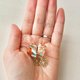 这件作品选用了偶尔可见橘色花纹的雅致瓷片,搭配了如花朵般绽放的金色零件。随着步伐摇曳,散发出低调的优雅。